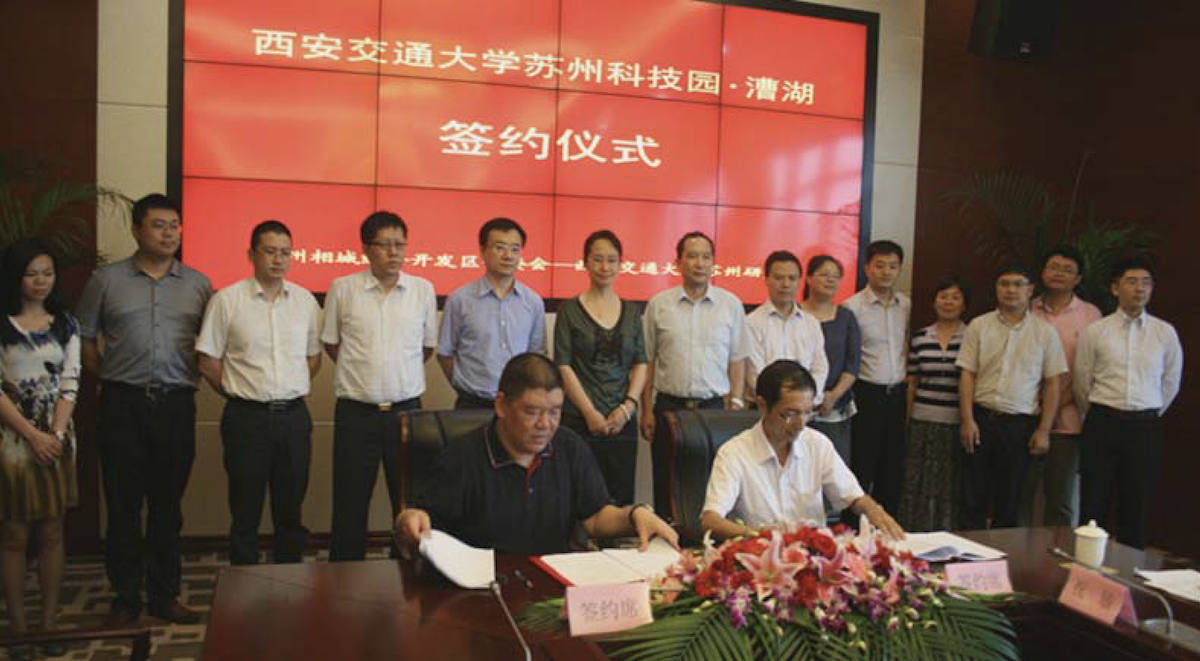 2012年8月,為深化校地合作,西安交通大學蘇州研究院與蘇州市相城經濟技術開發區管委會簽署合作協議,共同建設西安交通大學蘇州科技園·漕湖,由蘇州研究院成立科技園運營公司,并組建科技園運營團隊,集團由此起步。